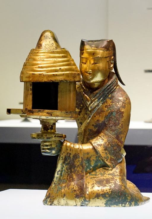 长信宫灯,因灯上刻有“长信”字样而得名。1968年出土于河北省保定市满城区的中山靖王刘胜之妻窦绾墓中,由青铜铸成,通体鎏金。