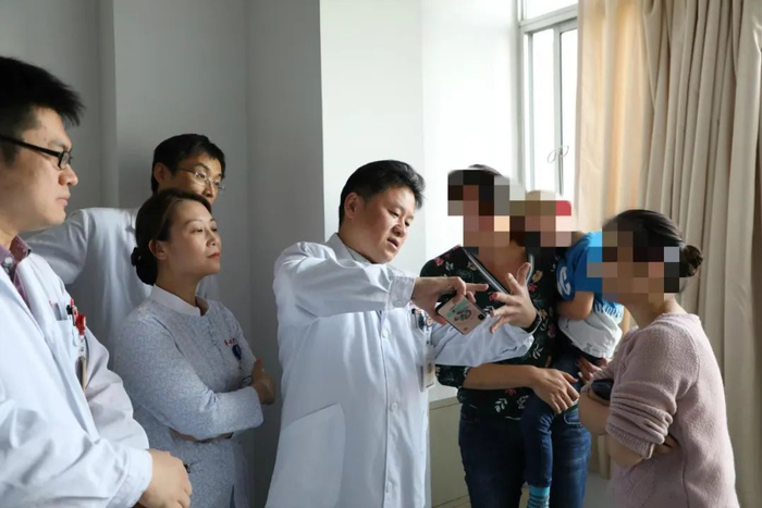 徐文东教授为一名来自德国的脑瘫患儿母亲讲解手术原理。
