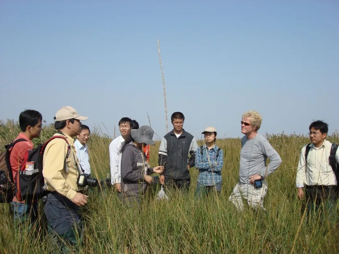 李博与互花米草原产地专家美国Brown University的Mark Bertness教授共同考察崇明东滩的入侵现状