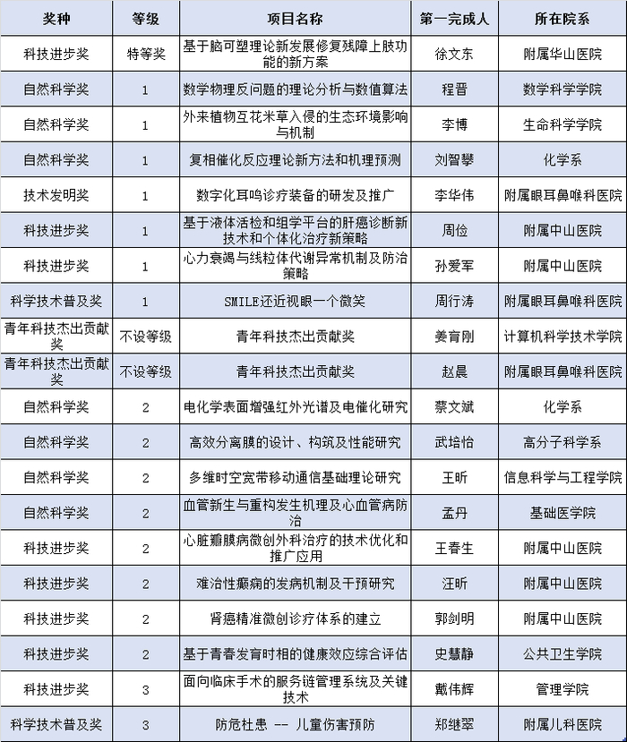 2019年上海市科学技术奖复旦大学获奖清单