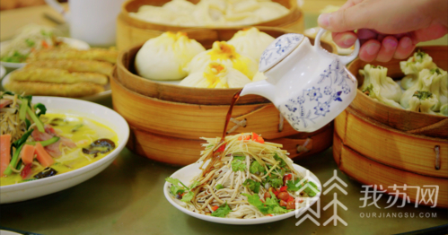 在聊到江苏“生活之美”时,两位主持人介绍起江苏人喝早茶、听评弹、看昆曲的“讲究”小日子。
