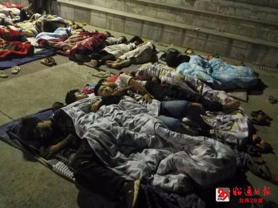 云南巧家县震后第一夜:有人把床单被褥铺地上睡路边