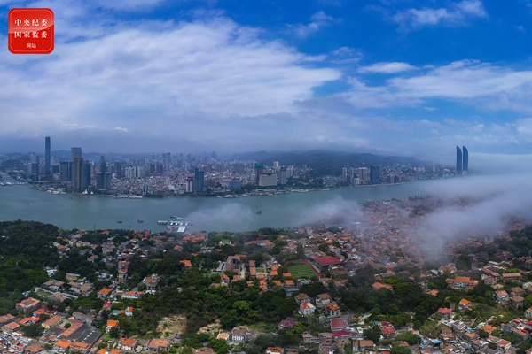 一城春色半城花,万顷波涛拥海来。从福建省厦门市思明区鼓浪屿-万石山风景名胜区上空望去,海天一色的美景散发出城市的勃勃生机,令到此游客心旷神怡。(福建省厦门市思明区纪委监委供 孙二伟 摄)