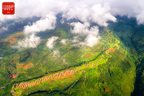云南省宜良县“68道拐”是一段盘山公路,建成后极大方便了靖安哨群众出行,因其形状蜿蜒逶迤,受到游客和摄影爱好者的青睐,已成为当地旅游必“打卡”的景点。(云南省宜良县纪委监委供 赵东明 摄)