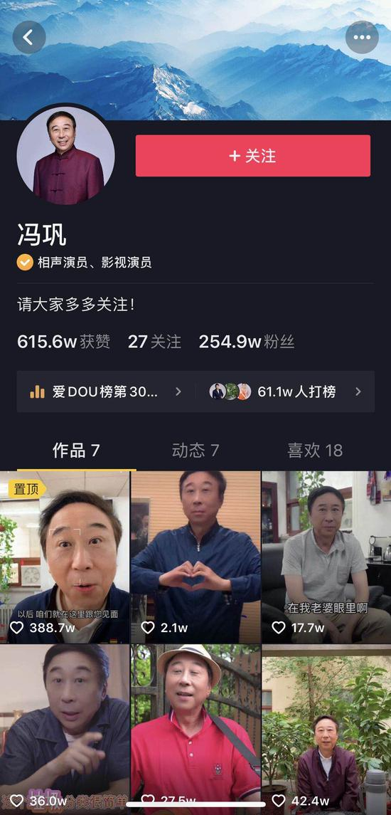 冯巩5月8日开通实名抖音账号,目前粉丝已超254万↓↓↓