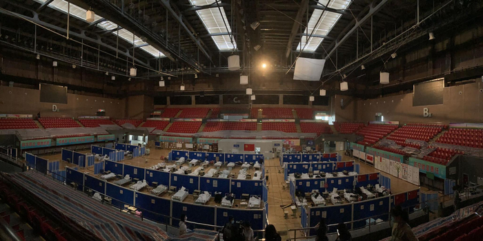 该剧另一位导演程源海介绍,剧组希望1:1还原武汉第一座方舱,于是在上海的多座体育馆勘景,最后选定了嘉定体育中心。“基本上(跟武汉方舱)一模一样,不光是场馆的大小和形状,还有座椅的排列方式。唯一的不同,这里的观众席座椅是红色,武汉的是蓝色。”选定后,剧组把原来羽毛球场的整块地胶撤掉,按照武汉方舱的样子铺床搭架子,24小时赶工,终于在5天内完成改造搭景。新京报记者探班时发现,“方舱”周围工作站还放有喇叭、彩笔和扇子等物件。汪俊表示,入住方舱的患者是轻症,气氛相对不那么沉重,剧中会更多地呈现方舱小社会的众生相,大家做操、下棋、跳舞、聊天,经历悲欢,甚至还发生了一段爱情。