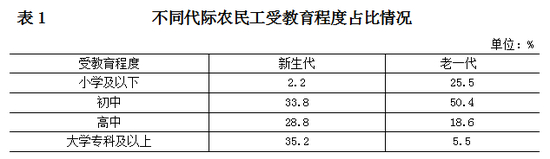 新生代农民工整体素质优于老一代,受教育程度、职业技能等级和接受公共就业服务的占比均高于老一代,但其职业技能仍有待提升。