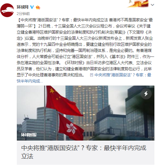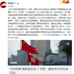 原标题:中央将推“港版国安法”?专家:最快半年内完成立法