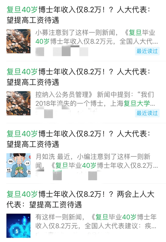 原标题:“复旦博士年收入仅8.2万”刷屏,人大代表建议……