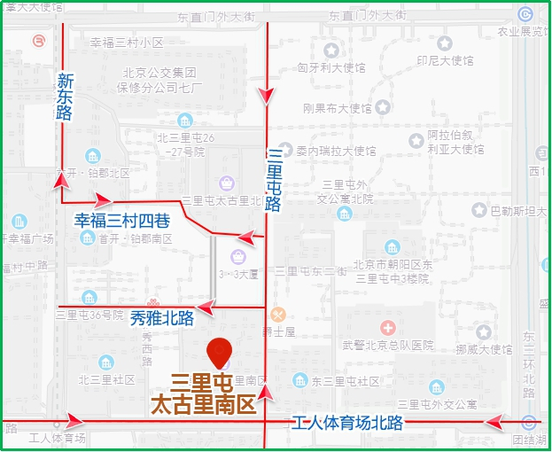 三里屯商圈周边道路13:00—22:30车流量较大,16—17时交通压力最为突出。