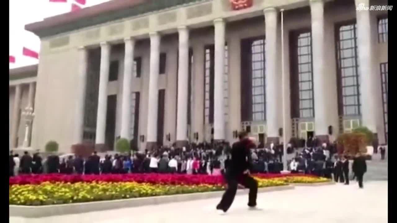 政协委员周建平人民大会堂外打太极:建议太极拳进奥运