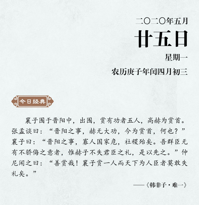 赵襄子如此封赏,也有其特殊的用意。晋阳被围,赵氏危在旦夕,彼时“群臣无有不骄侮之意者,惟赫子不失君臣之礼”。赵襄子首赏高赫,就是希望其他臣子仿效高赫,以此彰显君臣之道。这是当时儒家的基本看法,所以特别假借孔子之口说:“善赏哉!襄子赏一人而天下为人臣者莫敢失礼矣。”