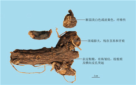 京大戟:呈圆柱形或圆锥形,长10~20cm,直径可达4cm,表面灰棕色至深棕色,气微,味苦涩。泻水逐饮。用于水肿胀满,胸腹积水,痰饮积聚,气逆喘咳,二便不利。主产江苏、山西、湖北等地。