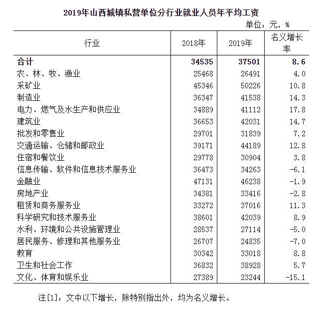 原标题:2019年山西省城镇私营单位就业人员年平均工资37501元