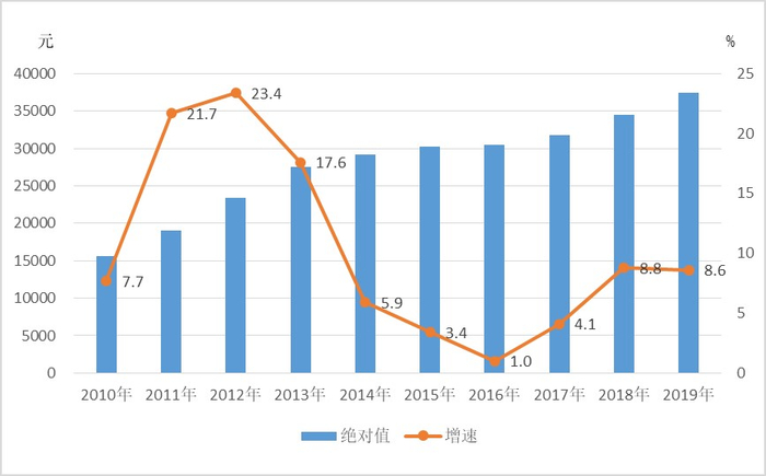 来源:山西省统计局2019年山西省城镇私营单位就业人员年平均工资为37501元,比上年增加2966元,名义增长[1]8.6%,增速比2018年回落0.2个百分点。扣除价格因素,年平均工资实际增长5.8%。