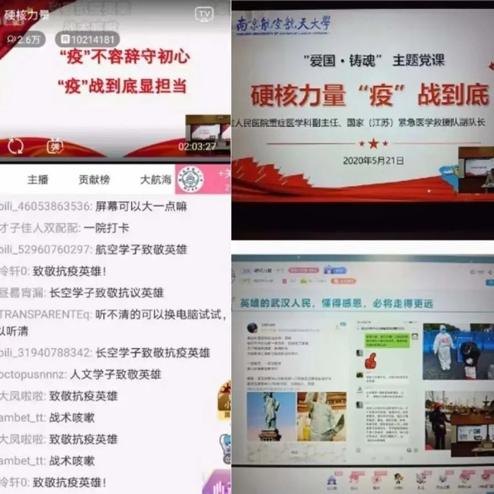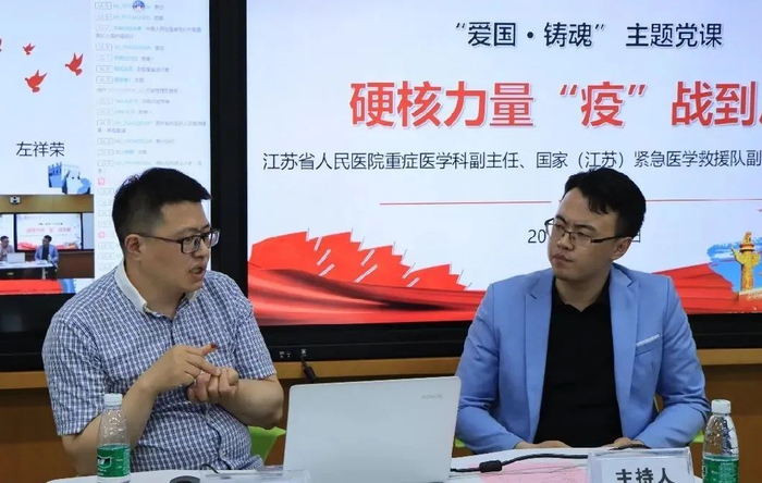 5月21日晚,江苏省人民医院重症医学科副主任、国家(江苏)紧急医学救援队副队长左祥荣应邀来校作了题为“硬核力量,‘疫’战到底“的“爱国·铸魂”主题党课,党课在将军路校区7407智慧教室和哔哩哔哩网上直播间同时精彩开讲,党委组织部、宣传部、学工部相关领导,各学院辅导员和学生代表参加线下课程,全体本科生党员和入党积极分子参与线上学习,课程最高网络人气值达3.8万。