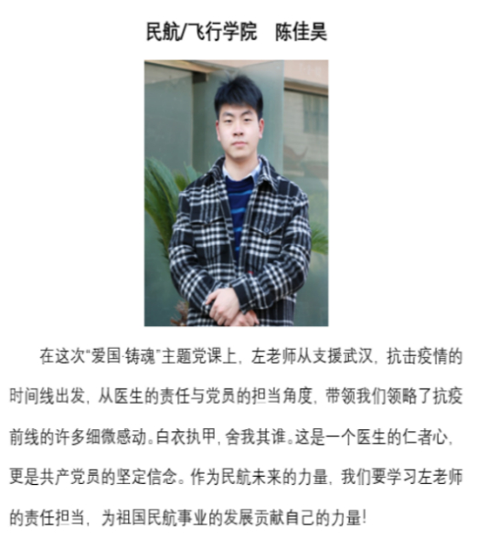党课最后,左祥荣寄语南航学生党员 ,他鼓励大家“争当先锋、搏击长空,书写灿烂的明天,拥抱伟大的时代!”