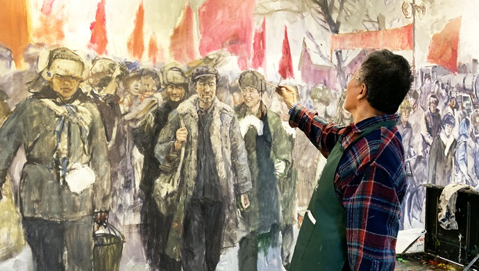 昨天,是油画家王铁牛创作的大幅油画《大庆石油会战》进入精心描绘阶段的第六天。他希望这幅画能让更多的人知道新中国那一段激情岁月和打上中华民族不屈不挠、艰苦奋斗烙印的大庆精神和铁人精神。