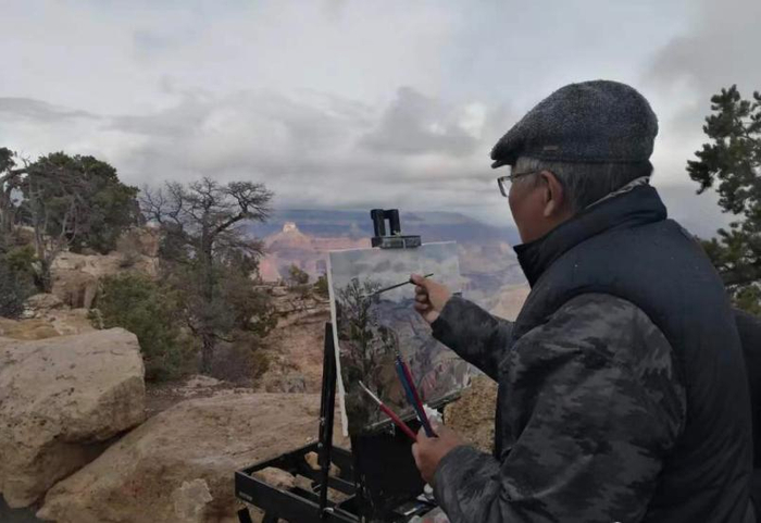 王铁牛在科罗拉多大峡谷写生。