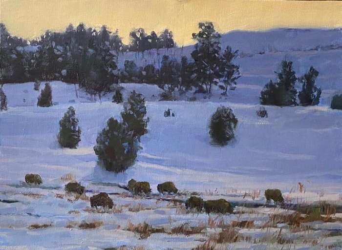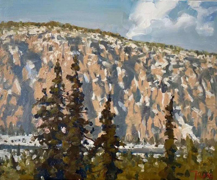他说,北美大地在遥远的地球那边,与我们这边的风景大有不同,那是另外一种自然之美。“冬春交替之时,冰雪依然覆盖着大地和山峦,科罗拉多大峡谷、黄石公园高傲而冷艳之美带给我全新的审美感受,我希望通过这些新作品把这种全新的美感传递给观众。”