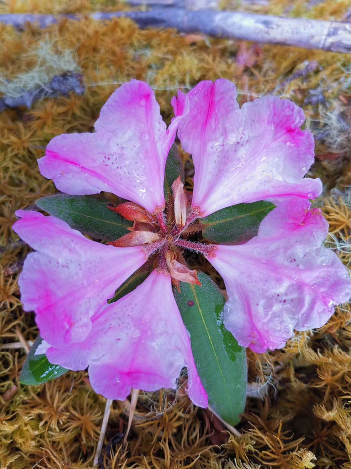 考察队在海拔3500米的山区寻找的前2天,均无收获。马永鹏回忆,5月22日,队员们在行走了三四个小时准备下山离开时,看到不远处的悬崖岩壁上有一株杜鹃花。“本来很崩溃了,但我一眼就看出来是枯鲁杜鹃,非常激动。”