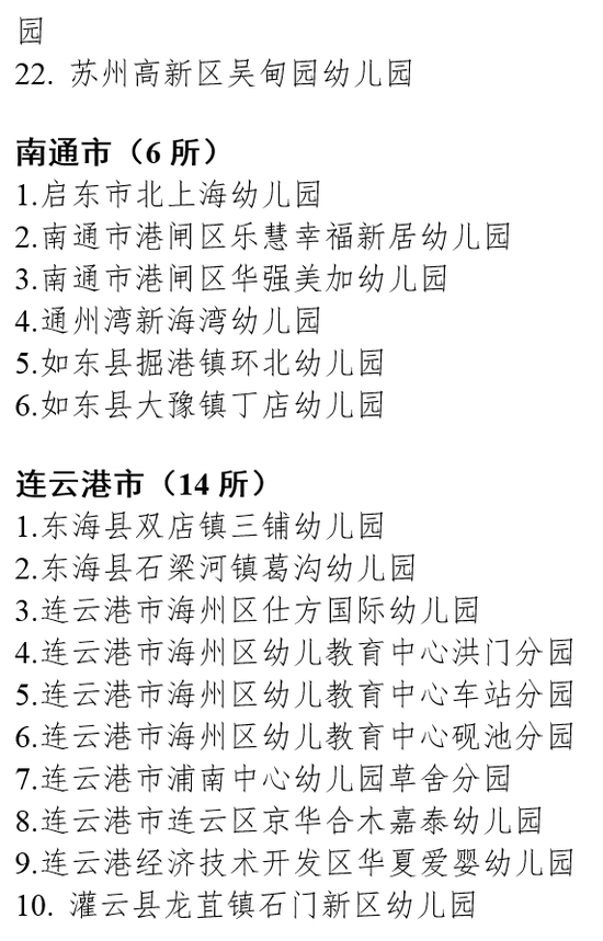 原标题:省教育厅关于确认南京晓庄学院实验幼儿园等130所幼儿园为省优质幼儿园的通知
