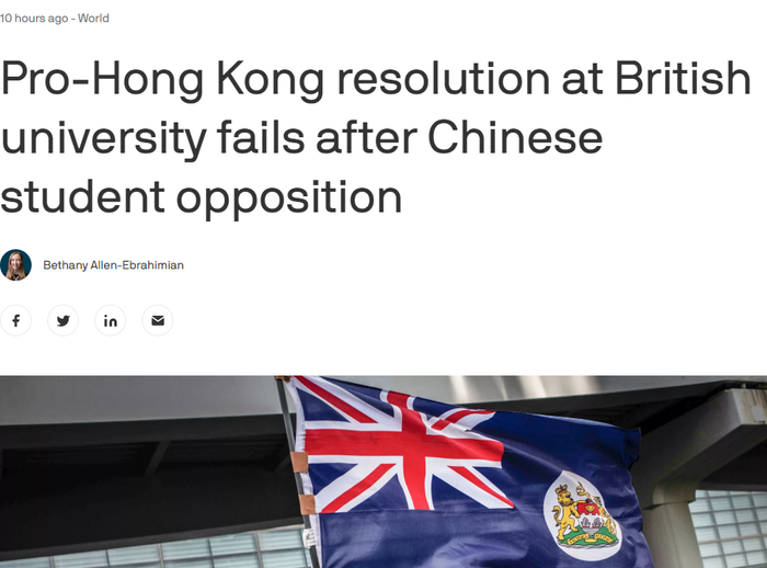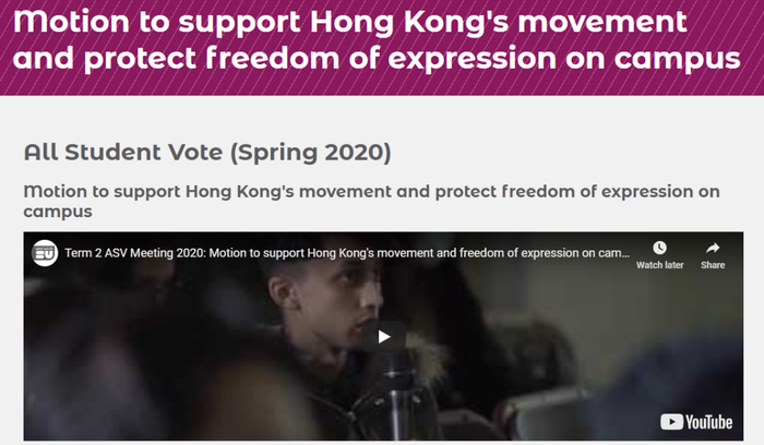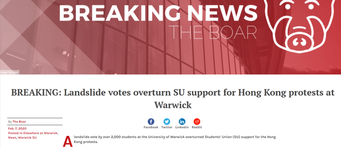 在今年2月初,英国华威大学(University of Warwick)的学生会曾经就一件涉及中国香港的议案,在全校学生内部发起了一个投票。