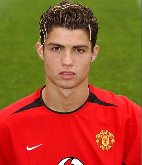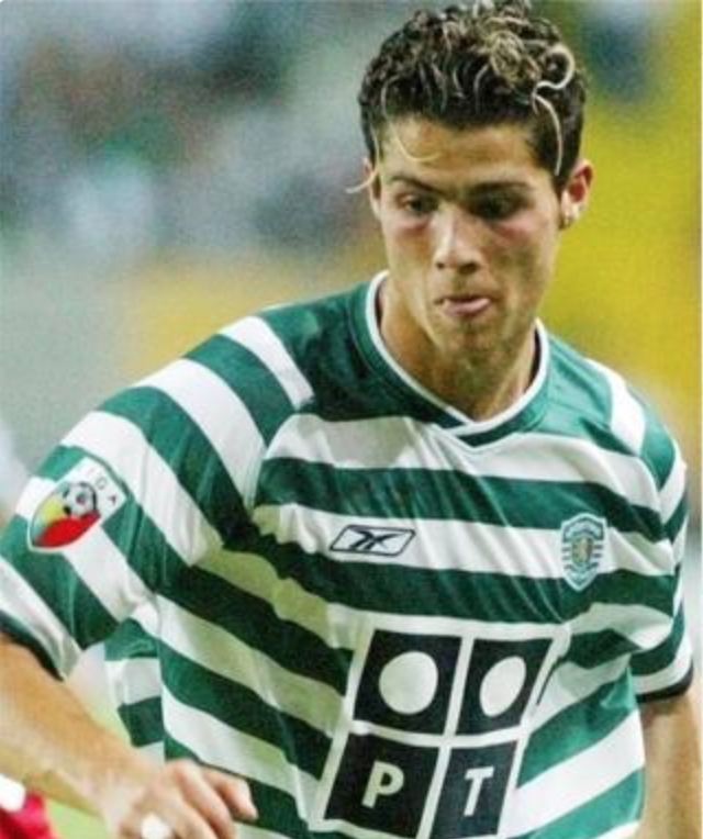 早在里斯本竞技时期,C罗就留着一头桀骜不驯的“泡面头。