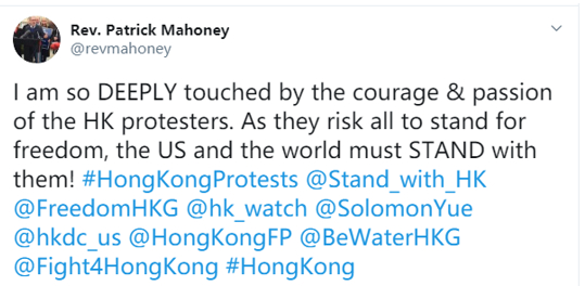 这名美国牧师还表示,特朗普应出面为乱港势力说话,这令乱港分子对这位牧师感恩戴德,一些人更希望美国政府能“出兵”香港。
