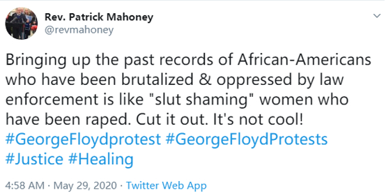 可这个美国牧师在面对本国骚乱时,却露出另一副嘴脸。他竟然表示:“把非洲裔美国人过去遭受执法部门暴力和镇压的事情翻出来,就好比是在对被强奸女性进行‘荡妇羞辱’。不要再这么干了。这不好!” ↓↓↓