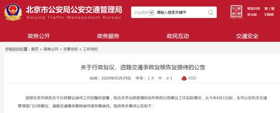 据北京市交管局官网消息,按照北京市政府关于行政复议接待工作的整体部署,结合本市当前疫情防控形势和行政复议工作实际情况,从今年6月1日起,全市公安机关交通管理部门行政复议、道路交通事故复核接待室恢复接待。现将有关事项公告如下: