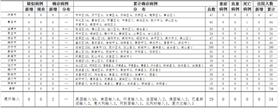 山东无本地住院疑似病例、确诊病例。累计报告确诊病例763例,死亡7例,治愈出院756例。