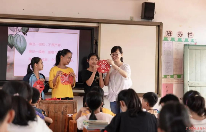 苍梧县纪委监委给石桥镇永安小学的学生们带来了一份特殊的节日礼物——廉洁手工课。孩子们在岑老师的指导下,有模有样地剪出了自己心中的“廉洁之花”。