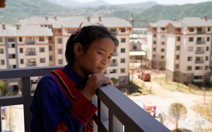 △2020年5月15日,昭觉县精准扶贫易地搬迁集中安置点沐恩邸社区,14岁的吉克史洛搬进新家,她好奇地看完所有房间和设施后,走到阳台打量周围环境。