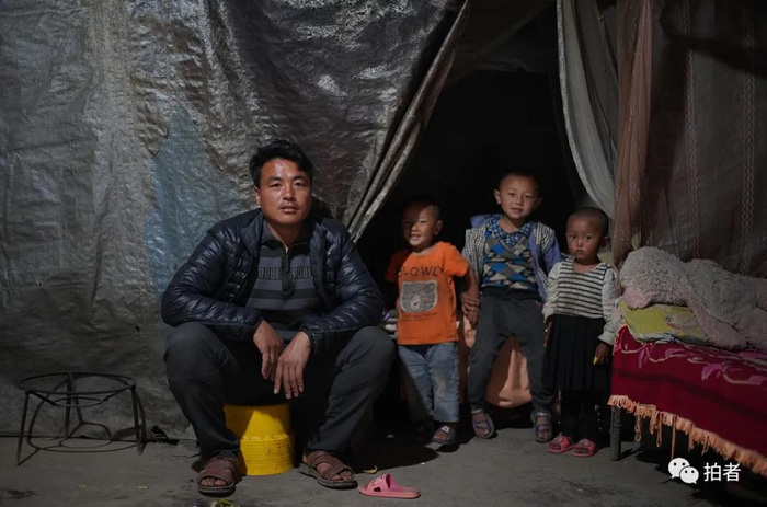 △2016年6月5日,特土社,吉克石三的家在被山体滑坡砸毁后,他们一家就生活在临时搭建的棚子里,一住就是一年多。
