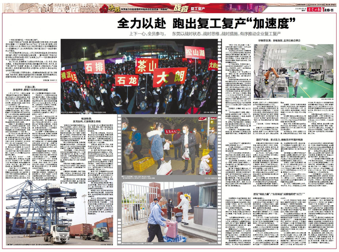 自2月以来,一场产业链上下游联动复工,政企合力共同抗“疫”的复工复产攻坚战在东莞打响。