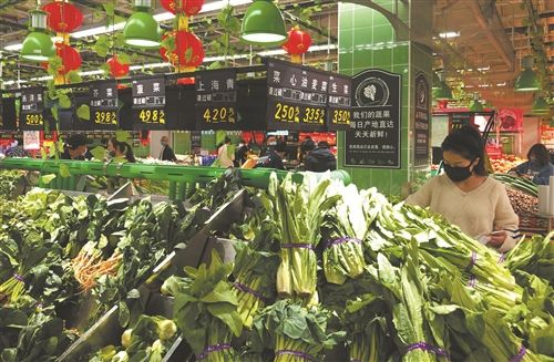 ■2月1日,市民在超市选购蔬菜。疫情期间,东莞确保超市、市场各类蔬菜货品供应充足 记者 程永强 摄