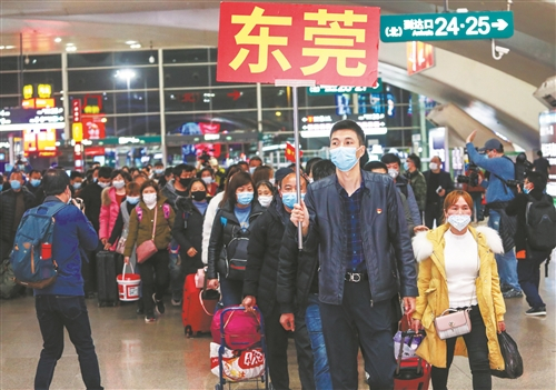 2月16日下午,首趟“劳务输出专用车”缓缓驶进位于清溪镇的某公司大门。厂门口,市人社局、清溪镇有关负责人早已做好准备,迎接大巴车上45名来莞务工人员;2月18日晚,载有云南籍务工人员的专列驶进广州南站,市人社局以及厚街、寮步、石排等人社分局工作人员将198名来莞人员接上了返莞的大巴;3月19日晚,首趟湖北荆州返莞返岗专列抵达虎门高铁站,904名荆州来莞务工人员顺利回到东莞,开始新一年的奋斗……