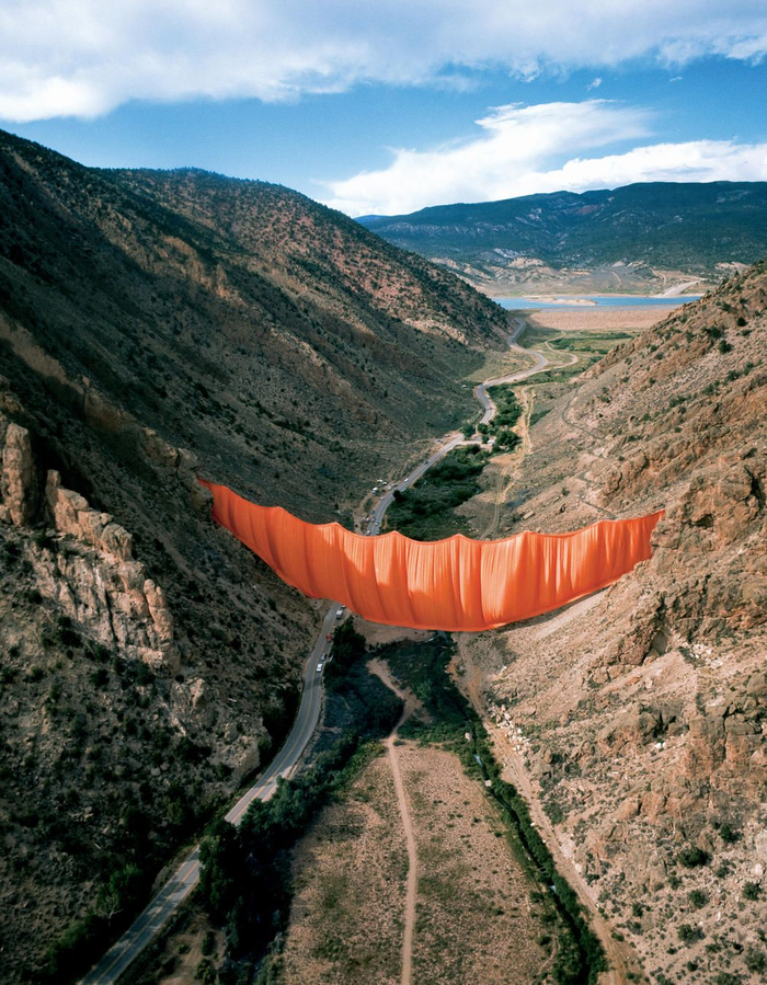 1970年-1972年的“峡谷垂帘”(Valley Curtain)是克里斯托夫妇另一件代表作,他们将重达3.6 吨的橘黄色尼龙布,垂挂在美国科罗拉多来福峡谷相距1200英尺的两个山体斜坡夹峙的U形峡谷间,巨大的橘黄色帘幕横拉在山野峡谷之间,颇具壮丽之美。这个耗资40万美元的作品,却因为即将到来的暴风雨,而在尼龙布挂上去28小时后,不得不紧急取下。