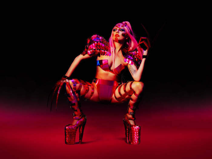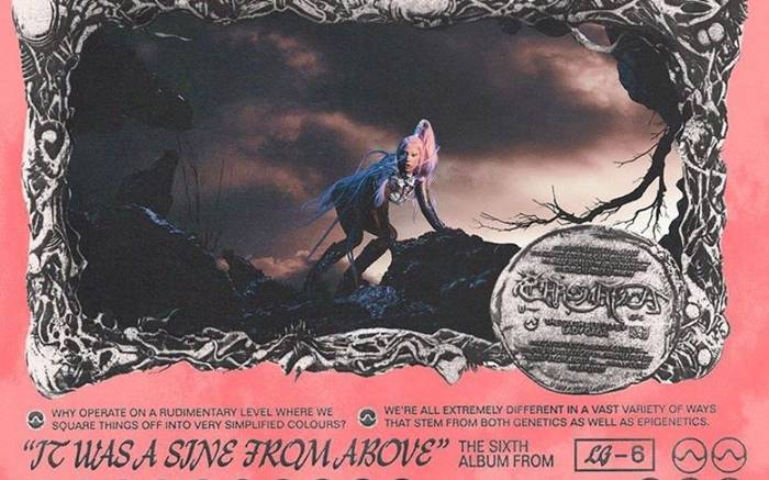 在这次《Chromatica》的专辑封面中,Lady Gaga一头粉色长发身穿黑色皮革紧身胸衣,肩戴盔甲,脚踩一双铆钉水晶高跟鞋,躺在朋克风十足的背景前。她以这高调的视觉效果和服装造型,昭示她向之前张扬的舞曲风格的回归。