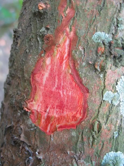 它们貌不惊人,长得和普通灌木差不多,但刮开树皮,枝干会渗透红色的汁液。
