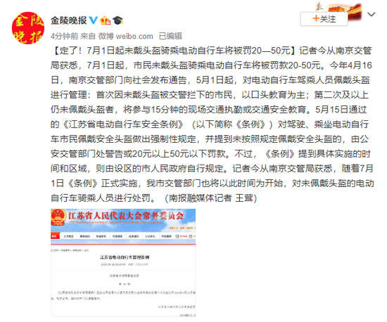 原标题:定了!7月1日起未戴头盔骑乘电动自行车将被罚20—50元