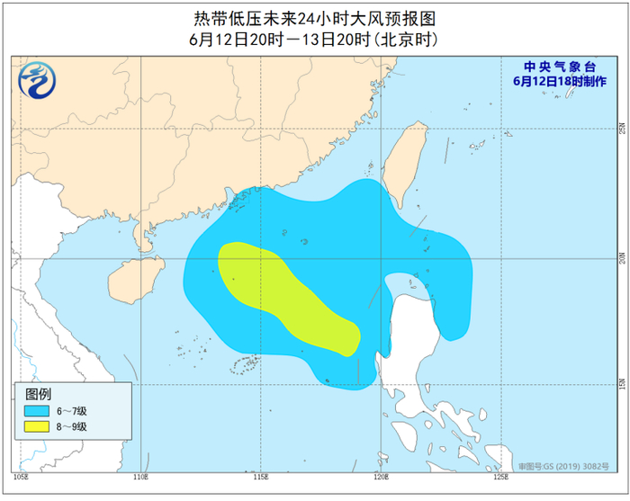 热带气旋底层中心附近最大平均风速达到10.8m/s~17.1m/s(风力6~7级)为热带低压