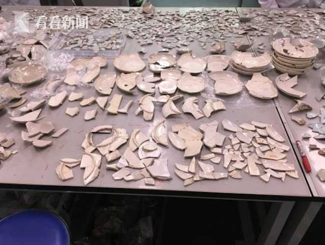 东华门遗址出土的陶瓷器碎片有上万片,经过室内清理包裹土,然后将碎片逐一摊开、阴干后,开始逐一拼对,共拼对出具有修复价值的瓷器700余件,另有大量具有较高研究价值的碎片。