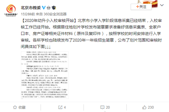 原标题:2020年幼升小入校审核开始