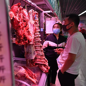 牛街清真牛羊肉市场,顾客在挑选购买牛羊肉。