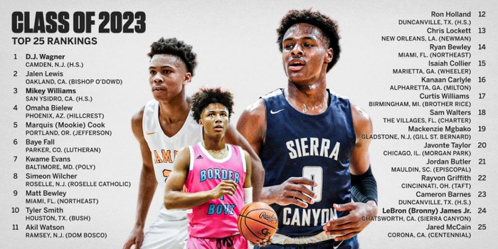 日前,美国媒体公布了2023届全美高中生排行榜,詹姆斯的大儿子布朗尼被评为四星高中生,全美排名第24位,布朗尼将在2023年高中毕业,最早可以在2024年参加NBA选秀。