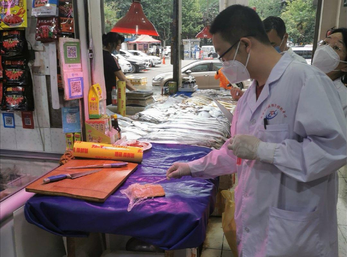 6月13日—15日,西安市疾控中心抽调专业人员对全市大型农贸市场及水产品市场的人员、环境、肉类及进口海鲜产品抽样进行新冠病毒核酸检测。