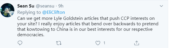 最后值得一提的是,在这篇文章的作者将此文发到了境外社交平台“推特”上后,一些疑似台湾当局的“水军”也毫不意外地开始通过“转移话题”或“人身攻击”的方式为台湾当局“搅混水”。