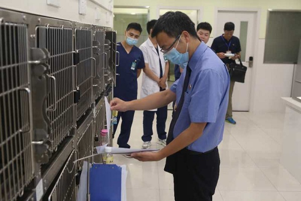 浙江省宁波市海曙区检察院的检察官走访辖区宠物医院,排除公共卫生安全隐患。马军 摄